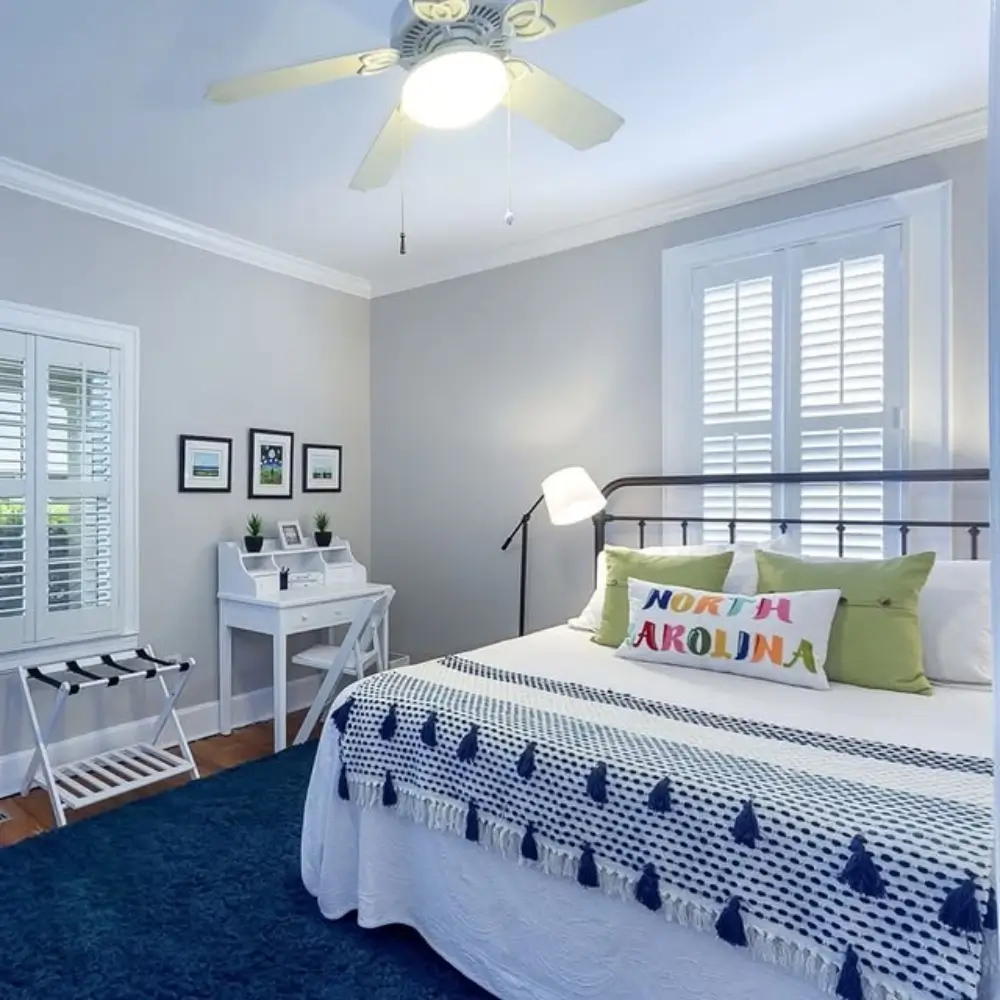 Neutral bases with a pop of color tend to work really well for Airbnb bedrooms because they appeal to the widest range of guests.