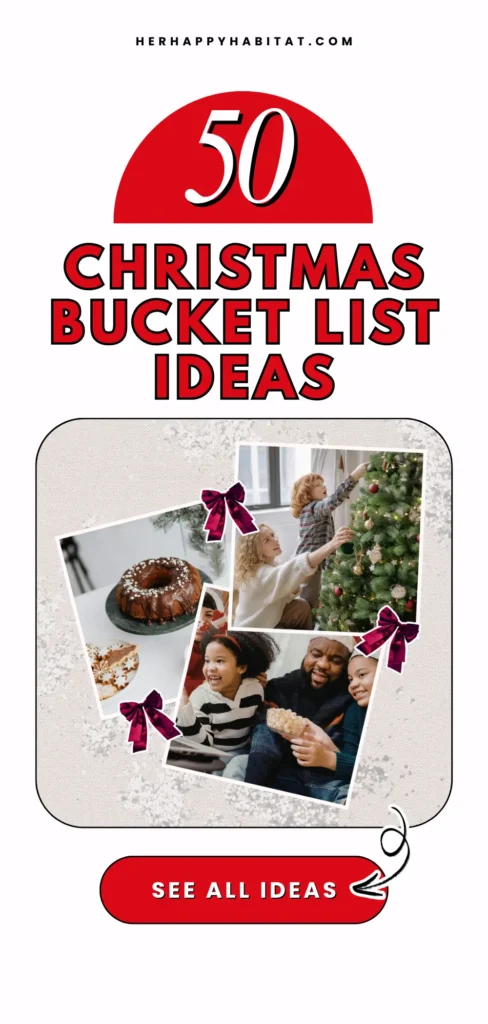 These 50 Christmas bucket list ideas cover everything from cozy nights in with favorite holiday movies to festive days out, thoughtful traditions worth starting, and a few random acts of kindness that make the holidays feel like the holidays are supposed to feel.