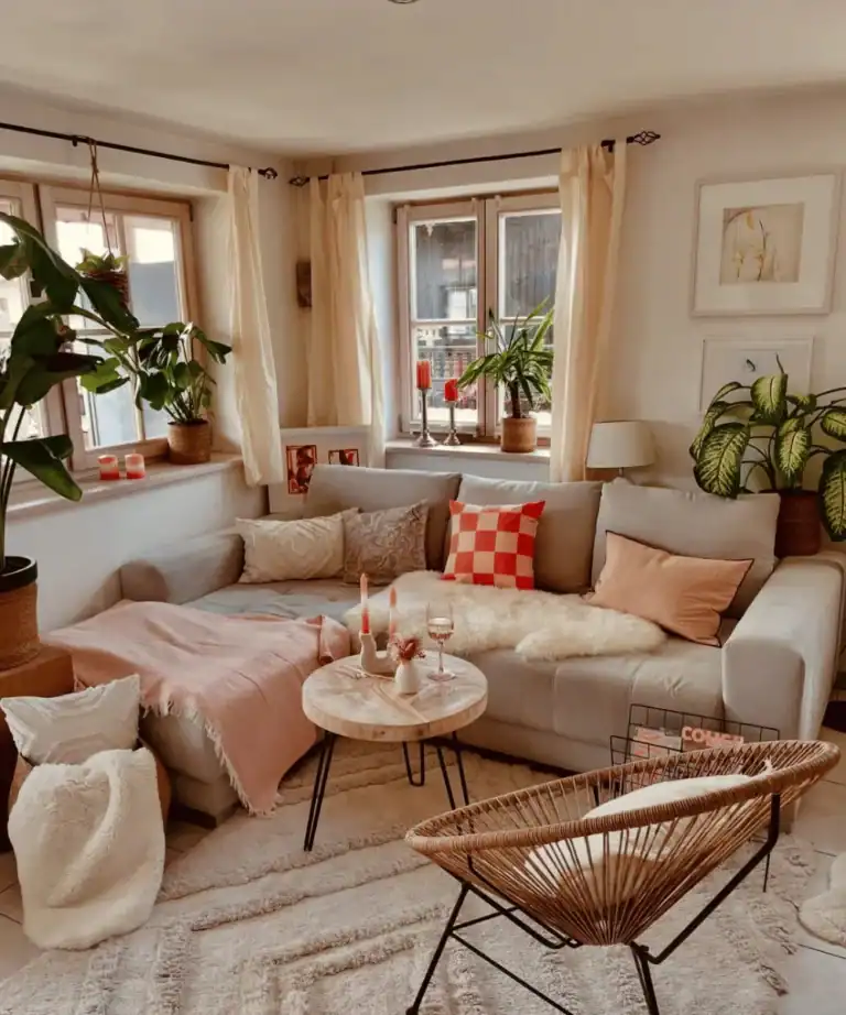 This kind of tactile layering is central to hygge interior design, transforming any living space into a deeply cozy, lived-in sanctuary.
