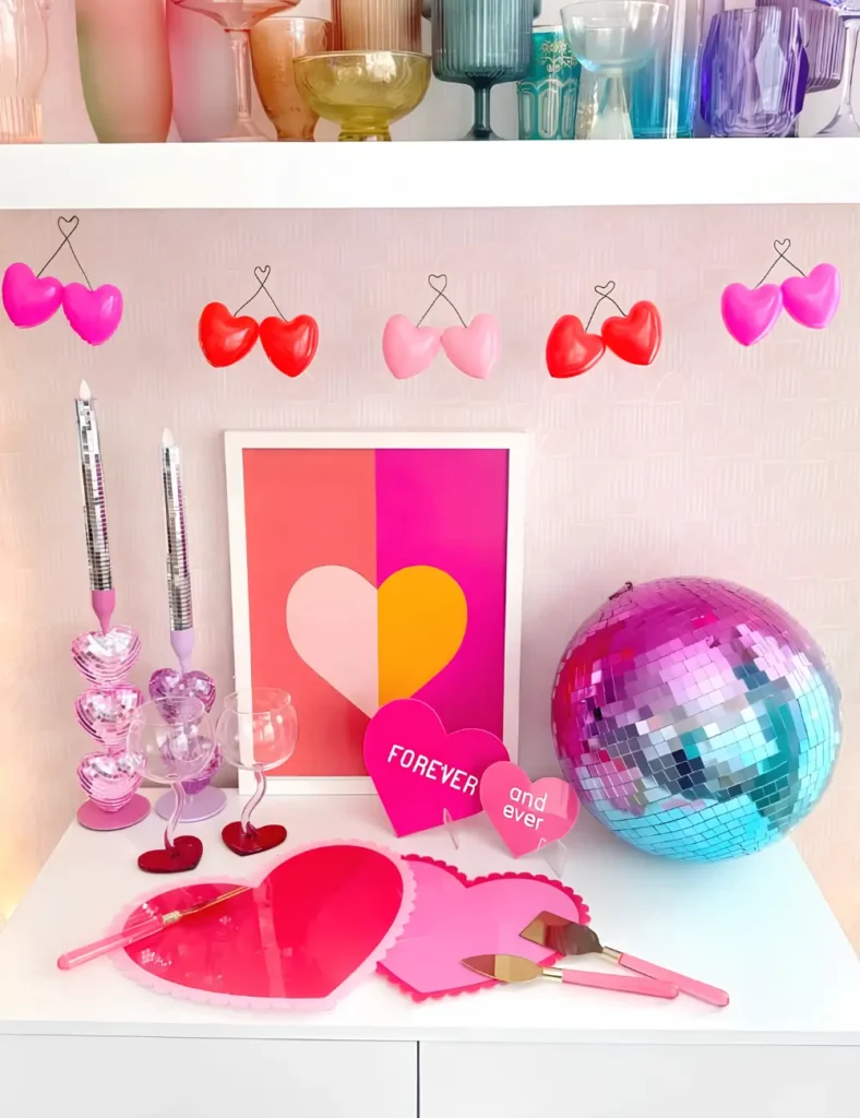 If you like your Valentine’s decor bold and a little tongue-in-cheek, jumbo cherry hearts get the job done. The oversized scale keeps it feeling intentional, adding color and personality without needing much else around it.